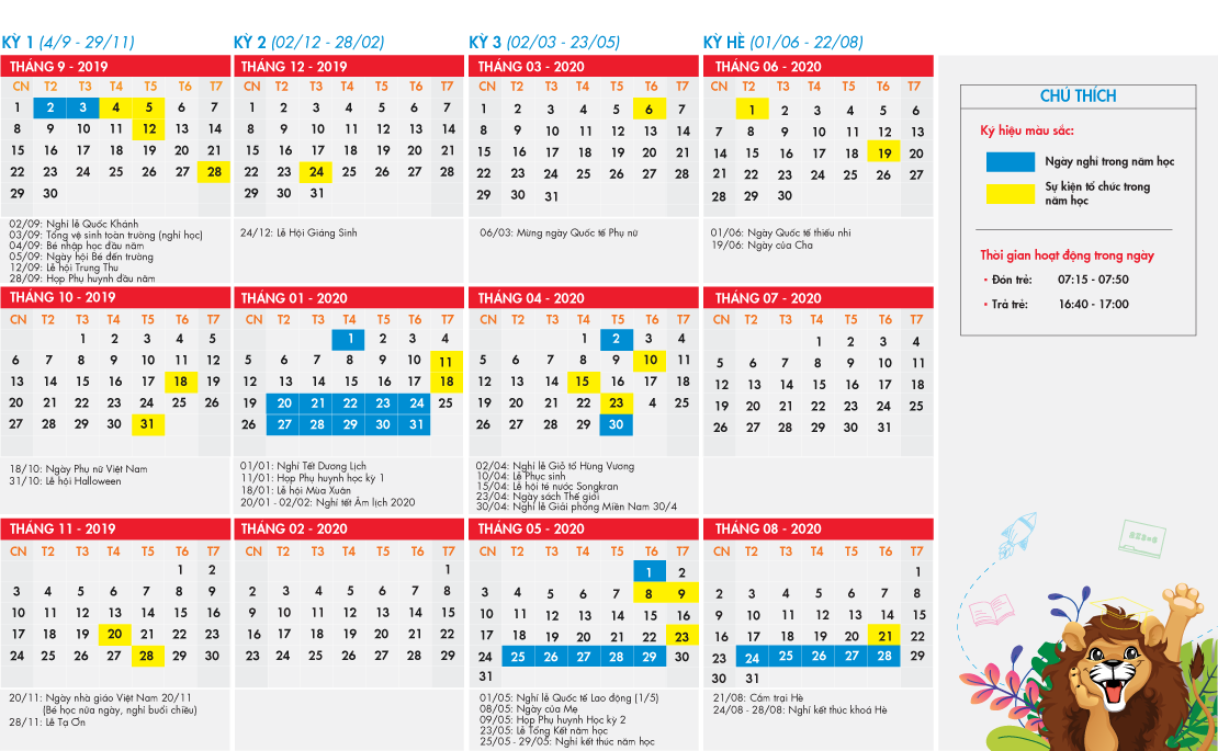 | Kindergarten (K) (5 tuổi) | 25,500,000 VND | 7,500,000 VND |